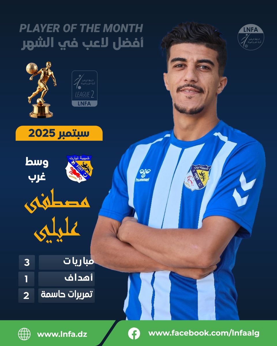 🏅 عن مجموعة وسط غرب: اللاعب مصطفى عليلي (شبيبة تيارت)