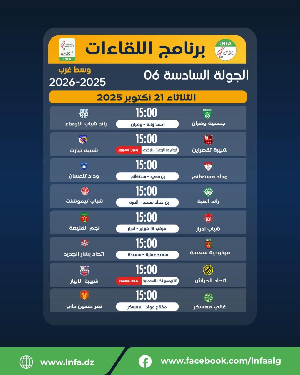 برنامج الجولة السادسة الثلاثاء 21 أكتوبر 2025