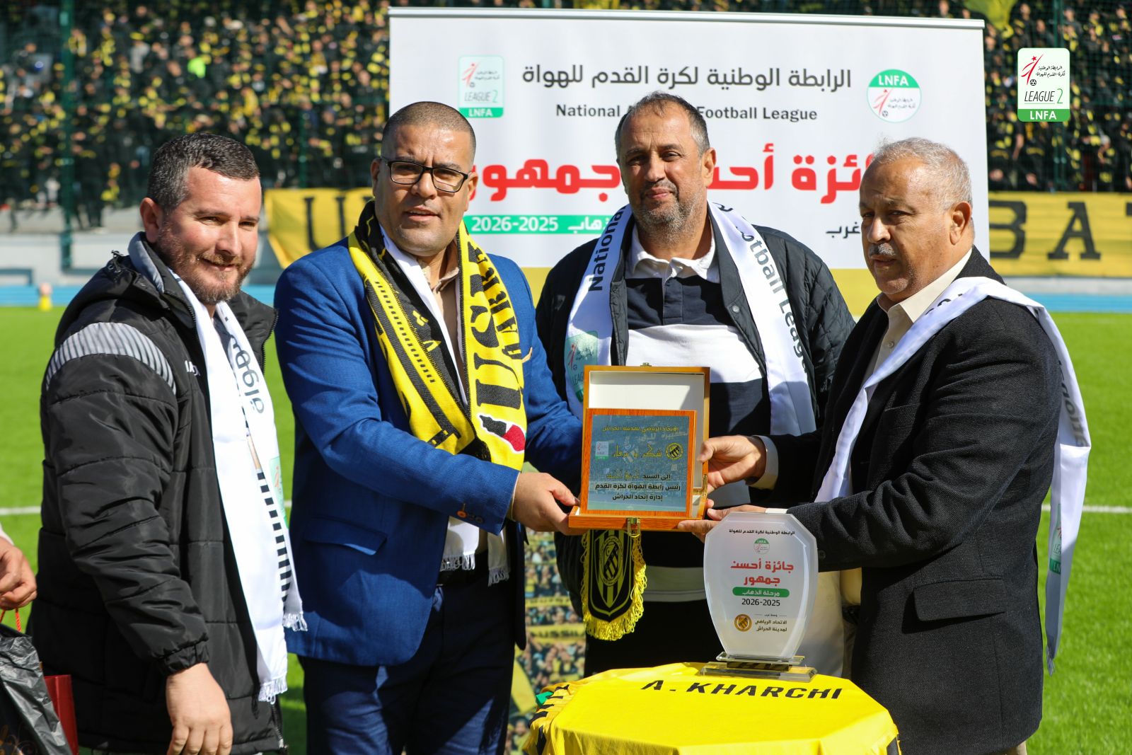 وقد سلّم الجائزة السيد أحمد خرشي، رئيس الرابطة، الذي هنأ أنصار النادي على مساهمتهم الإيجابية في ترسيخ ثقافة التشجيع المسؤول وتعزيز الصورة الحضارية للمنافسة.
