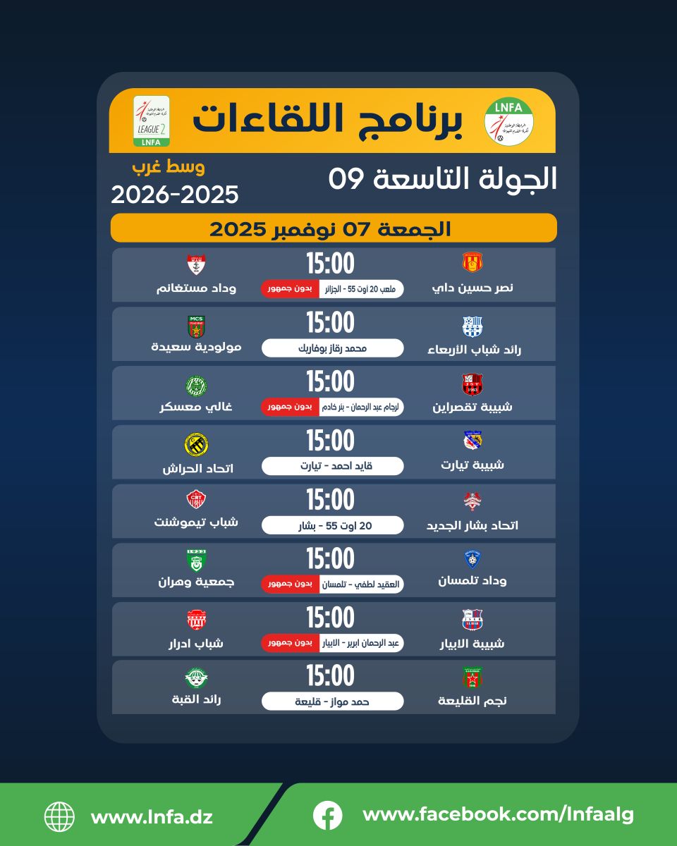 تعديل برنامج الجولة التاسعة يومي الجمعة 07 و السبت 08 نوفمبر 2025