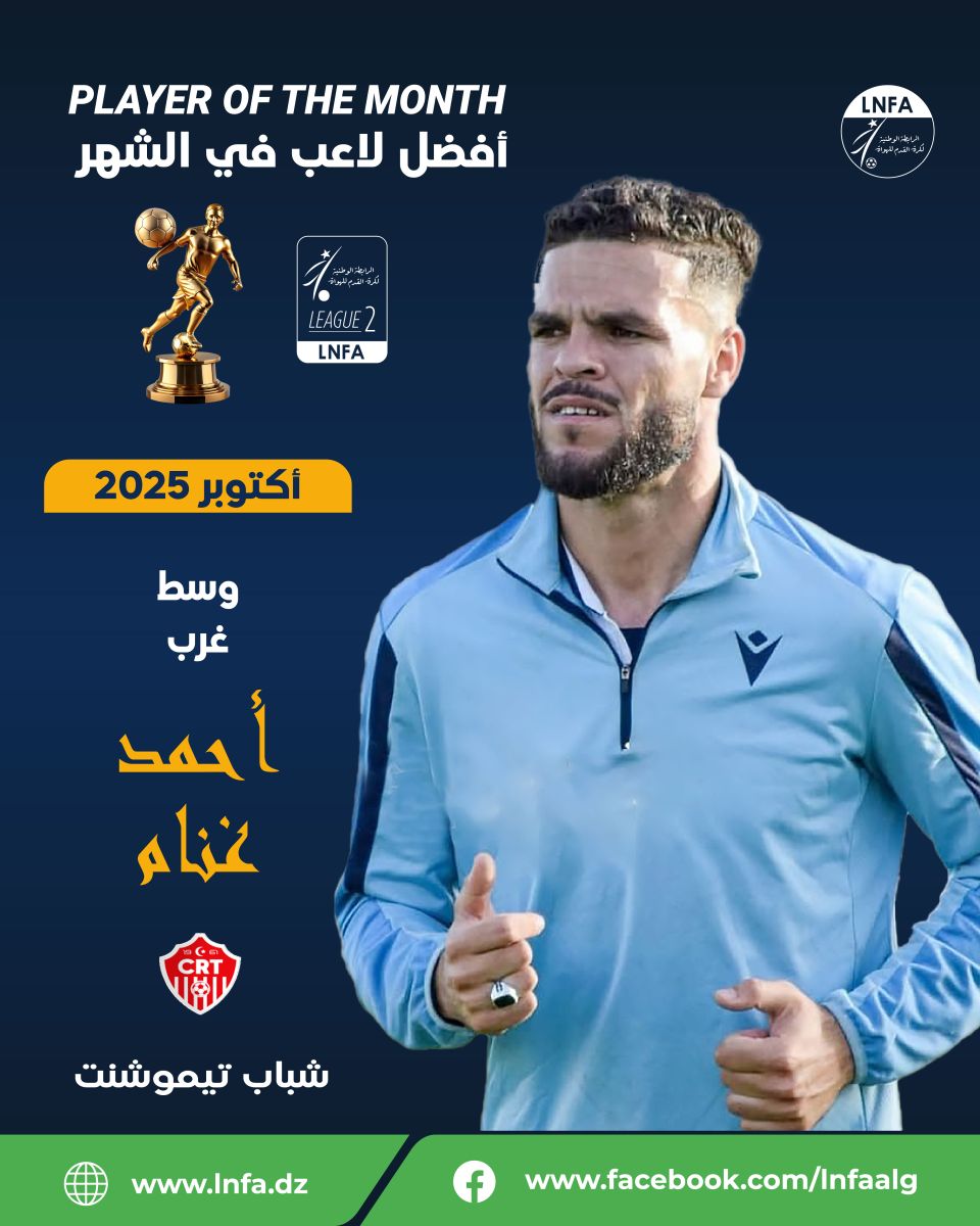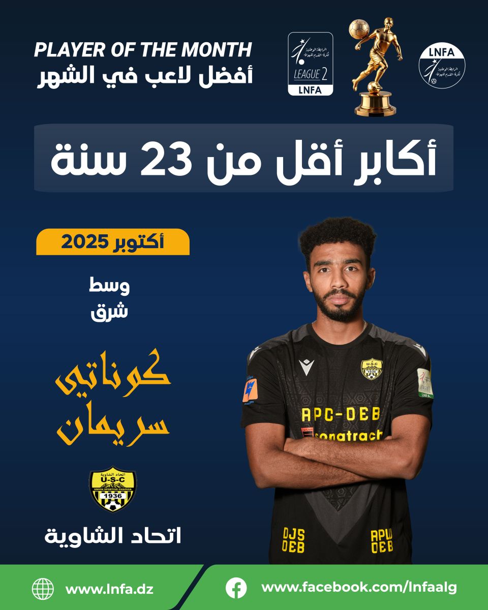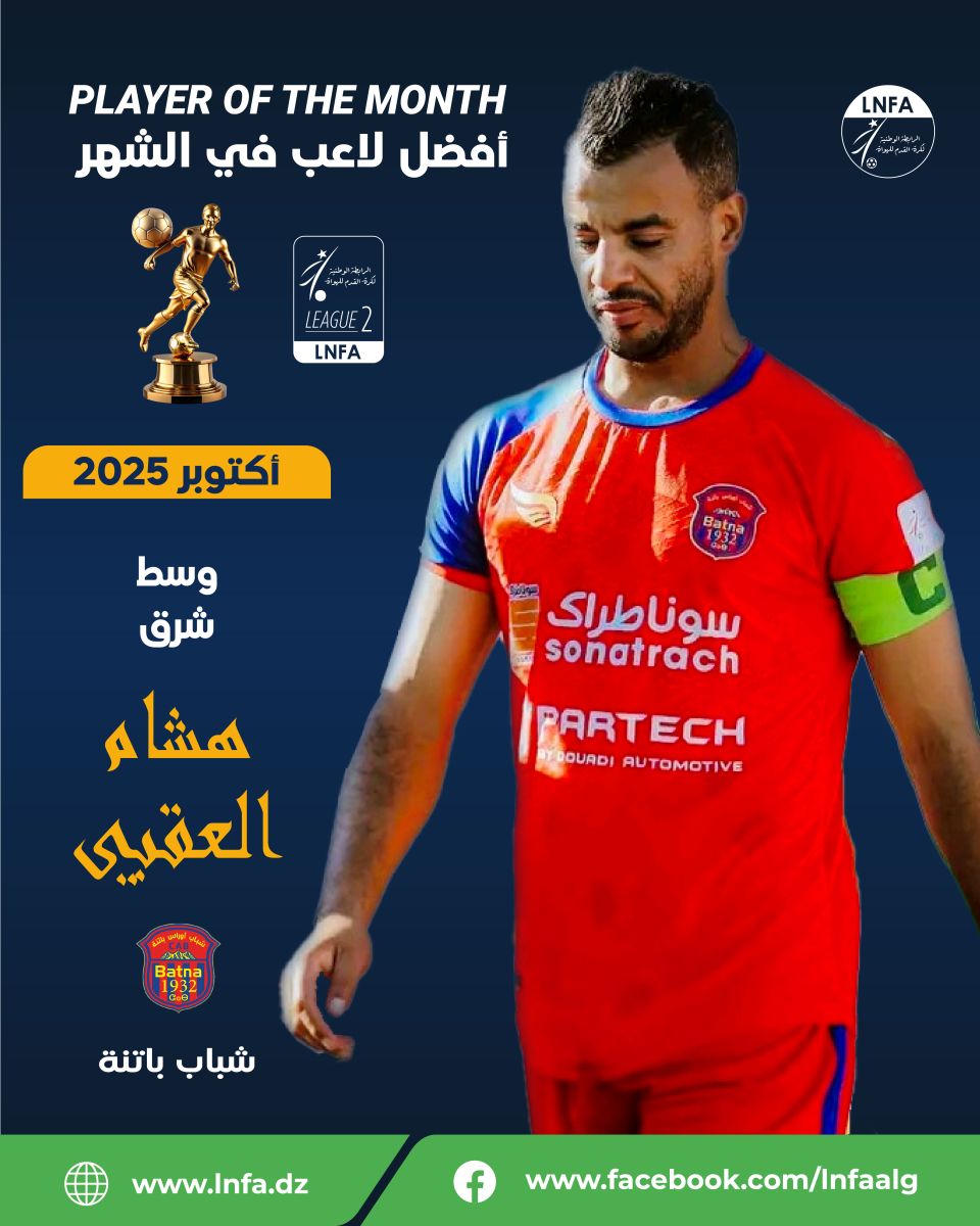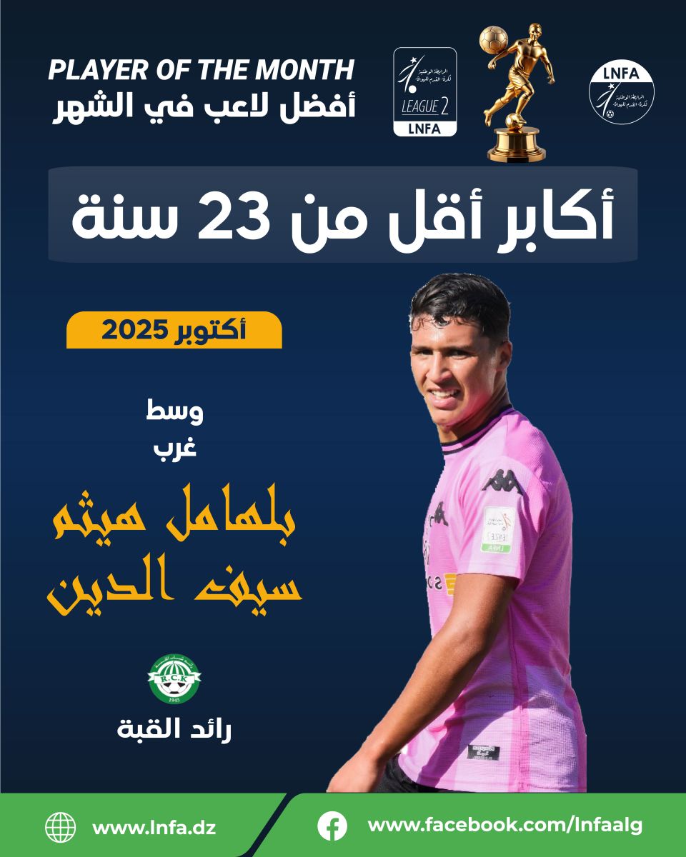تعلن الرابطة الوطنية لكرة القدم للهواة عن نتائج التصويت الخاصة بجائزة أحسن لاعب لشهر أكتوبر 2025، والتي جاءت على النحو التالي: